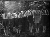П/л "Мир" 15-летие лагеря. Оля Махортова, Лена Нестеренко, вожатая Нина Булгакова и библиотекарь Валентина.